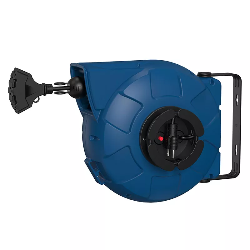 Khung thép để gắn tường, vỏ nhựa chắc chắn và tay cầm mang theo thực tế: cuộn cáp điện là phần mở rộng cáp lý tưởng.